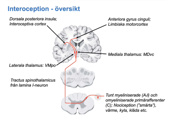 Interoceptionen kommer ffa viktigaste området sensoriskt- ligger i insula, mer specifikt det primära området, dorsala posteriora insula