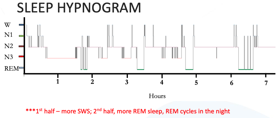 REM surtout dans dernier 1/3 de nuit