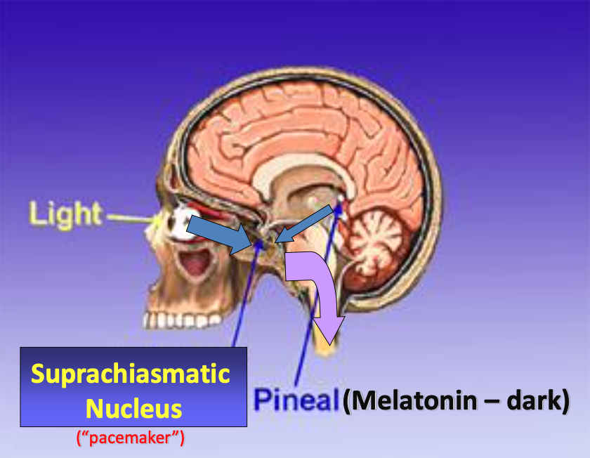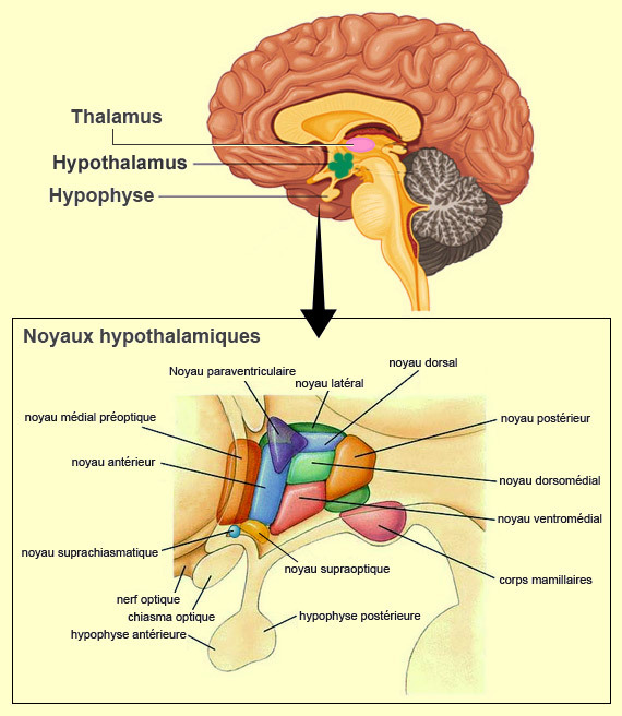 La mélatonine agit sur le noyau suprachiasmatique de l’hypothalamus antérieur