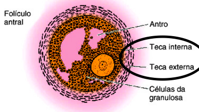 (mecanismo das 2 células: estradiol formado c/ androgênio do ciclo anterior)