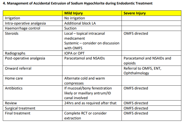 initial management of NaOCl extrusion