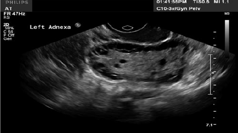 Retomando el caso anterior, en los resultados tiene prolactina de 10 ng/dl, TSH 0.9 (0.4-4.5), FSH 9, LH 12, estradiol 120, testosterona total 50 ng/dl, 17 OHP 100 ng/dl. ¿Qué diagnóstico concluye?