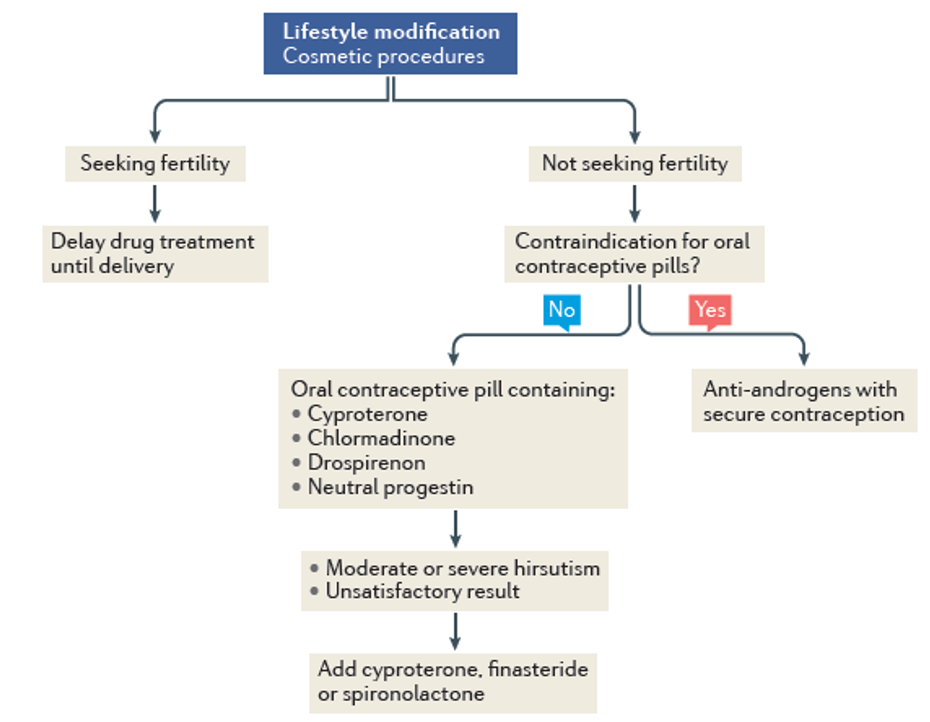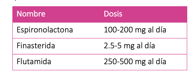 Después de TX por 6 meses continua con datos severos de hiperandrogenismo se puede añadir finasteride, espironolactona, etc.