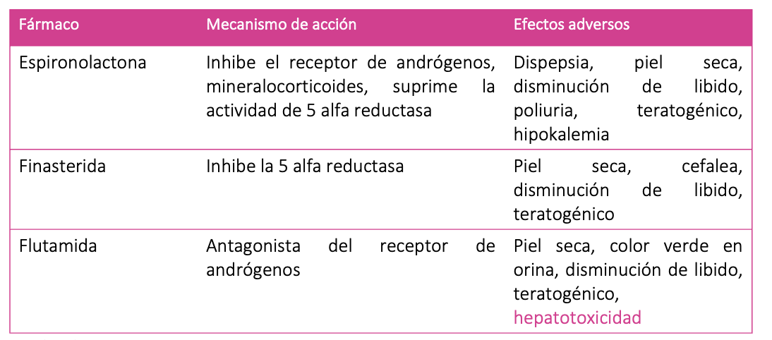 Primera línea de tratamiento para las manifestaciones de hiperandrogenismo y las alteraciones menstruales