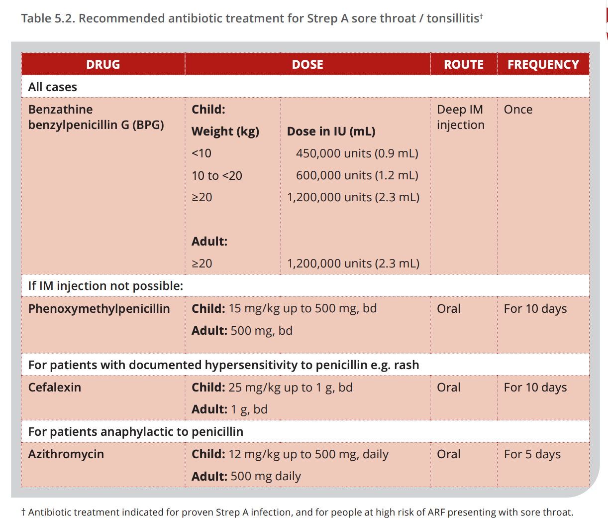 ndicated for proven strep A infection or for people at high risk of ARF presenting with sore throat