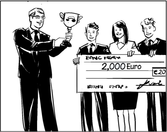 Bronnadh corn (trophy) agus seic (cheque) dhá mhíle euro orthu.