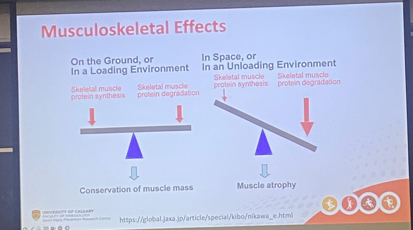 In space, humans do not need to support their bodies, muscles become atrophied (sarcopenia). The main cause of loss is a decrease in muscular activity