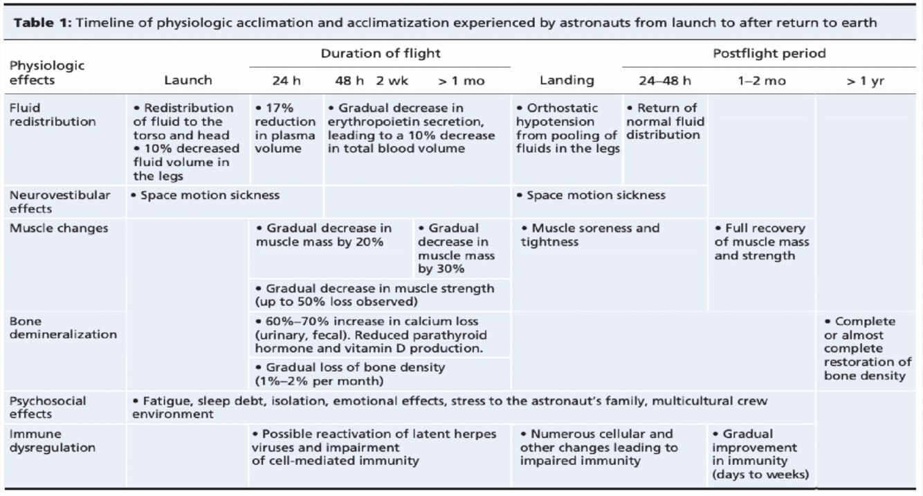 extended duration showed signs of … balance with … loss, muscle …, cardiovascular and hematic changes, m…, endocrine, and … disturbances