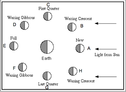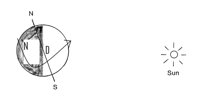 (3) Label the side of the Earth on which it is day (D) and the side of the Earth on which it is night (N).
