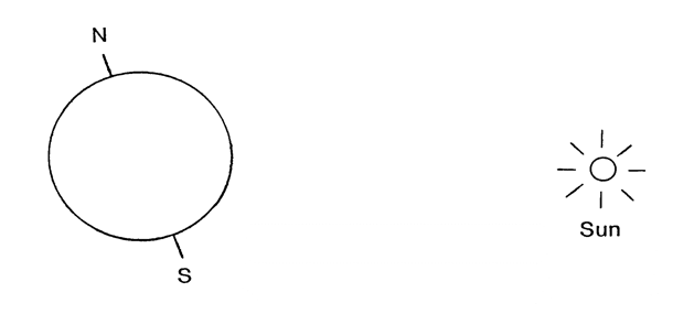 (2) Draw curved arrow to show the direction in which the Earth spins.