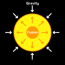 Fusion reactions lead to an equilibrium between the gravitational collapse of a star and the expansion of a star due to fusion energy.