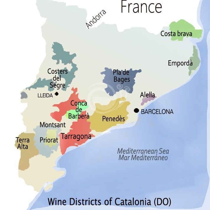DOs: Cava, Penedes, Priorat, Montsant, Tarragona, Conca de Barbera,