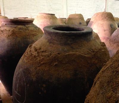 Een grote stenen kuip, gebruikt voor het gisten van de most en het opslaan van de jonge wijn