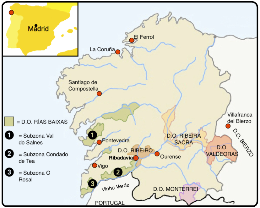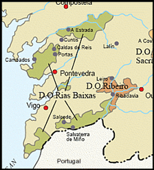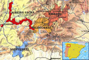 Welke DO ligt ingeklemd tussen DO Ribeiro en DO Valdeorras?