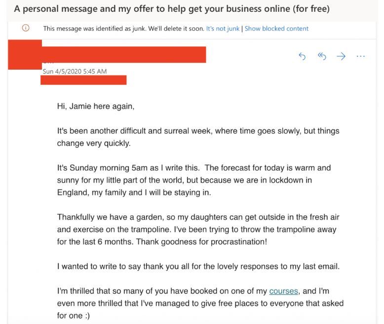 Our junk inbox included emails covering the following topics: