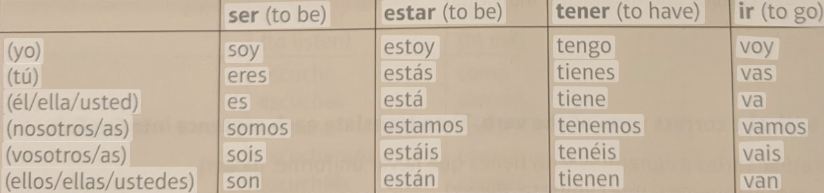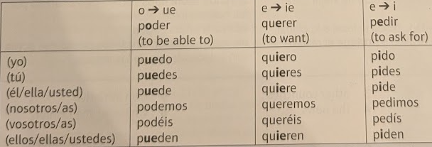 Stem-changing verbs are formed in the same way as regular present tense verbs. However, a vowel change occurs in the stem in some of their forms (I, you (singular), he/she/it/you polite (singular), they/you polite (plural)). 1, 2, 3, 6 verbs. They are usually regular in their endings.