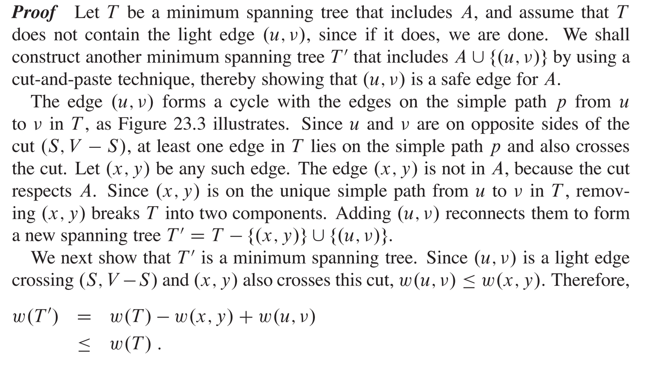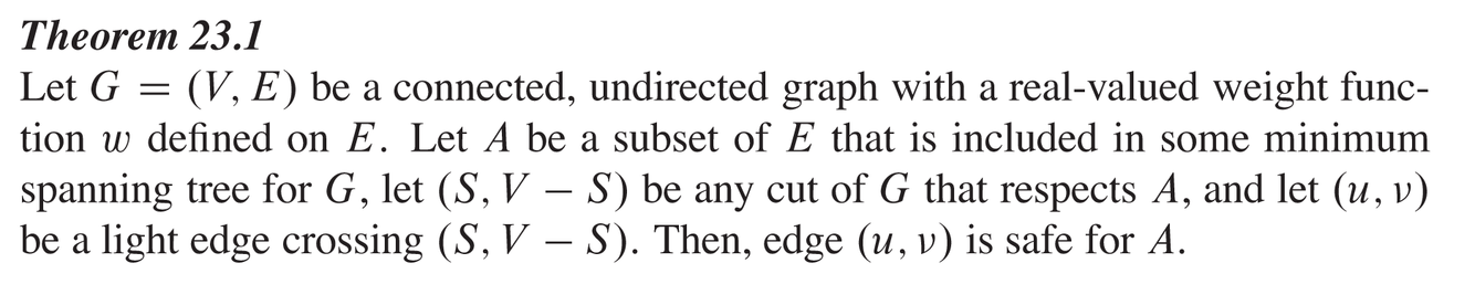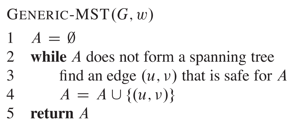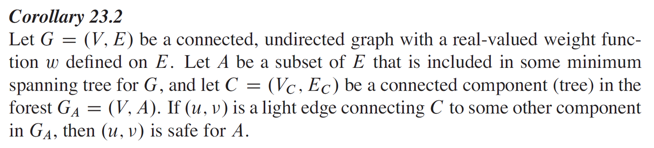 Prior to each iteration, A is a subset of some mininum spanning tree.