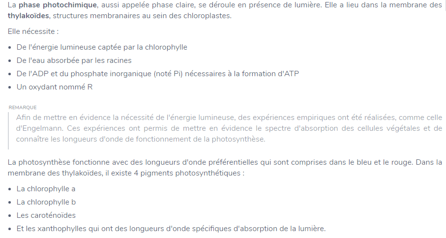 Qu’est-ce que nécessite la phase phtochimique