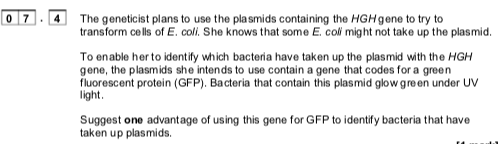 can quickly identify transformed bacteria under UV light