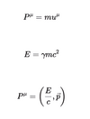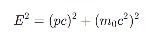 The relativistic energy-momentum relation is expressed as ______, where ( E ) is the total energy, ( p ) is the momentum, and ( m ) is the mass.