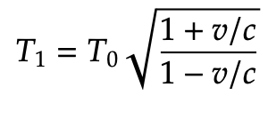 Give the equation for T1, the time between the arrival of pulses at the observer