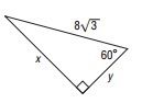 x = 8sqrt3 and y = 4sqrt3