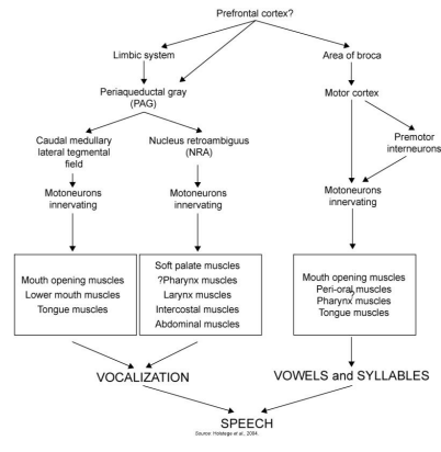 what are the subcortical areas involved in vocalization?