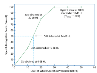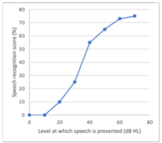 -Speech recognition score plotted against the level at which speech is presented