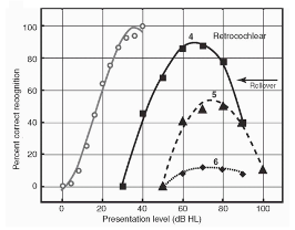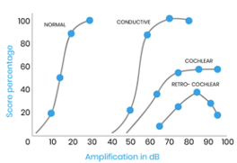 -As the presentation level increases (gets louder) the percentage of correct score increases