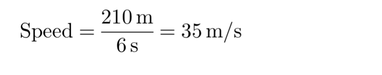 A car travels a distance of 210 m in a time of 6 s. Calculate the speed of the car in m/s.