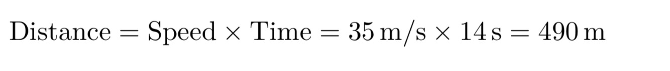 Calculate the distance travelled by the car in 14 s, if the speed is constant.