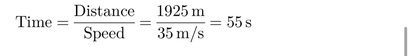 Calculate the time taken, in seconds, for the car to travel a distance of 1925 m.
