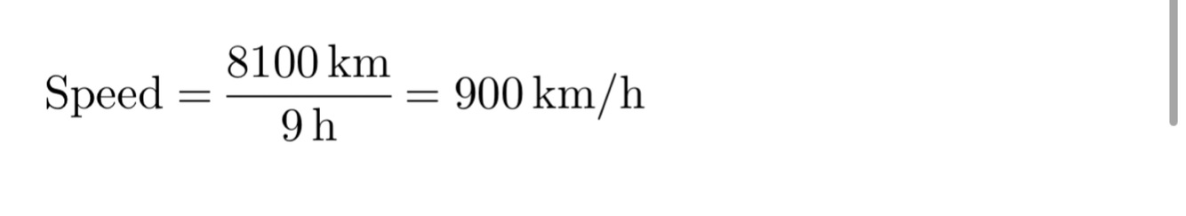 An aeroplane flies between two cities that are 8100 km apart. It takes 9 hours to complete the journey. Calculate the average speed in km/h.