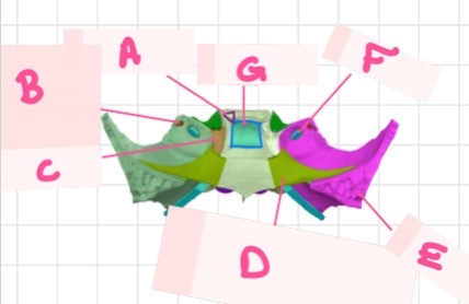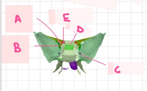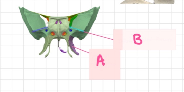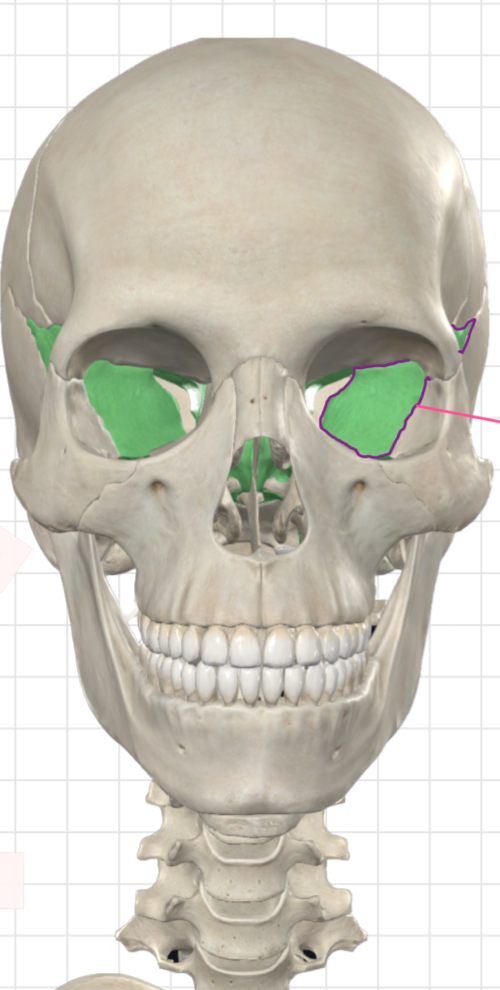 What part of the sphenoid bone is highlighted (green) in this image?
