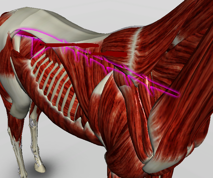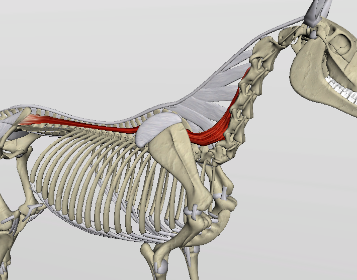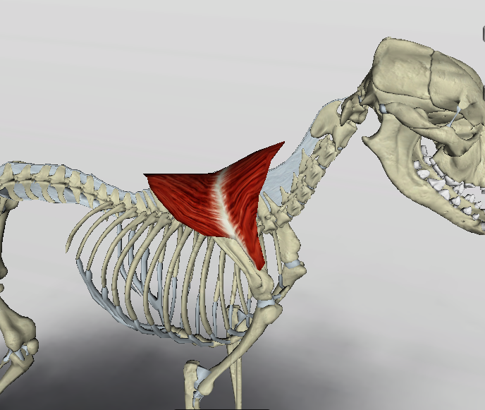 brede platte spier onder oppervlakkige fascia met een stevige aponeurosis(uitwendige schoft-schouderband). Verbind voorbeen met asskelet.