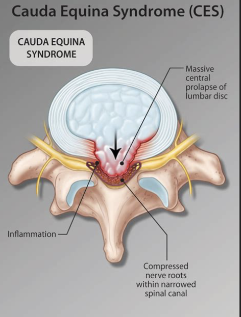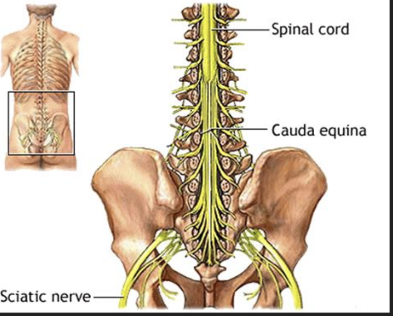 Carries: 2-5th Lumbar + S and Coccyngeal nerve pairs