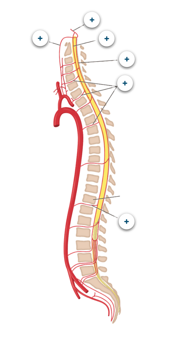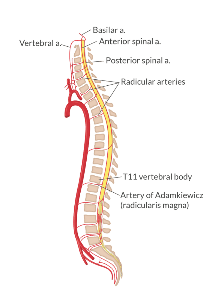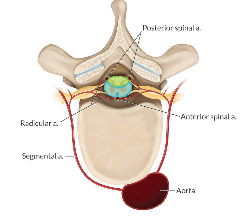 regions of the spinal cord that only have one blood supply and no collateral, so they’re particularly vulnerable to ischemia