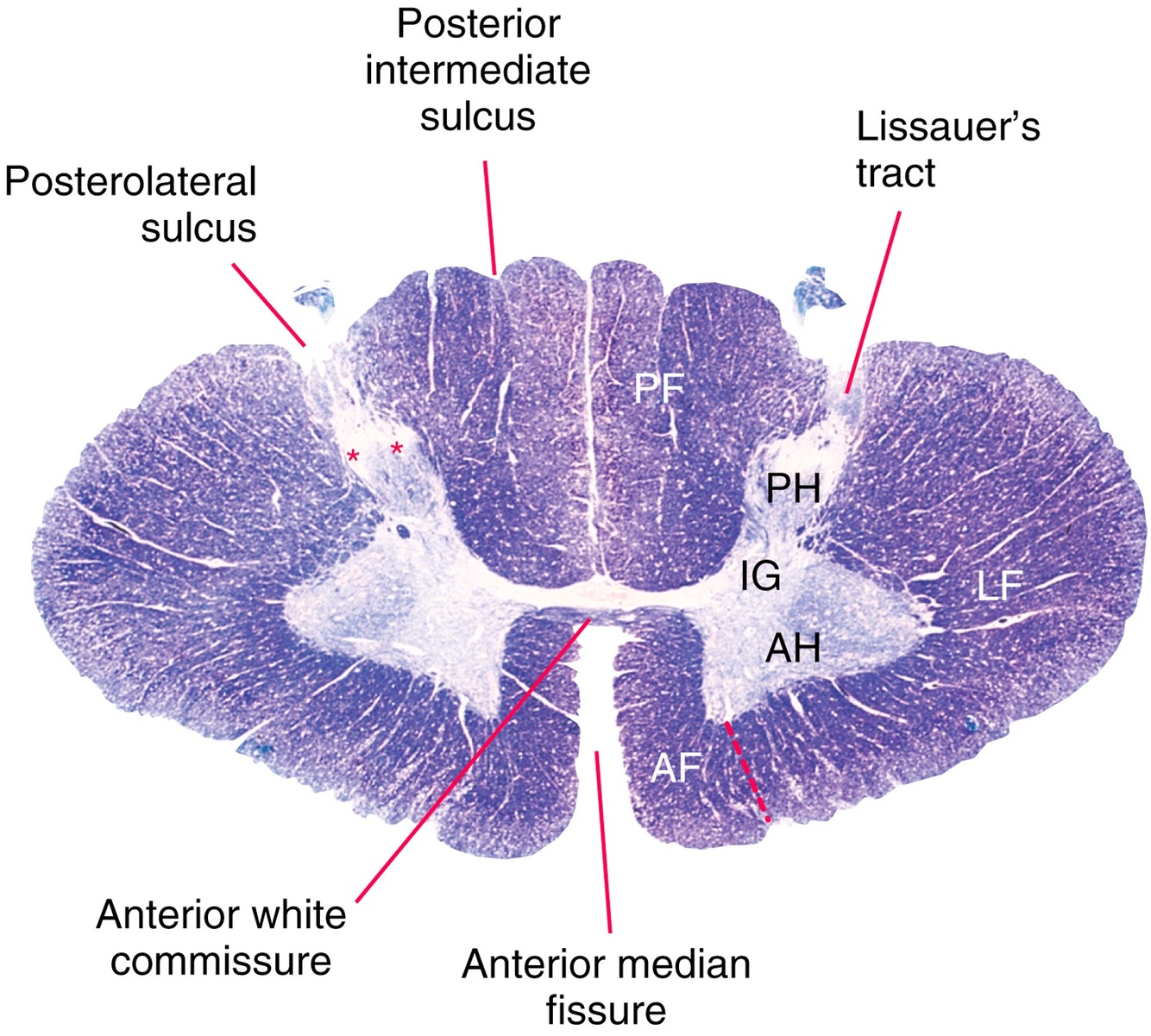 Explain the cross-sectional structure of the spinal cord.