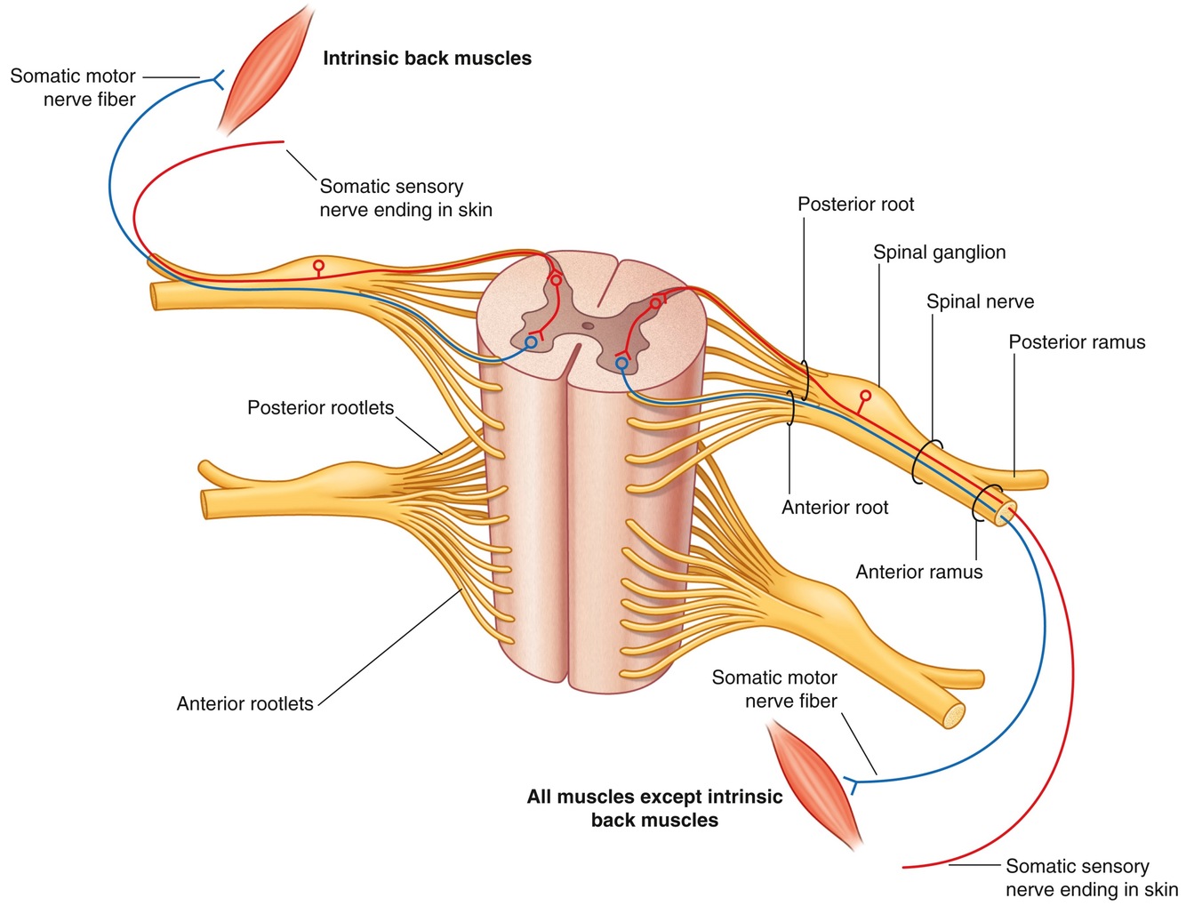 A spinal nerve then splits into a posterior and anterior ramus (plural. rami).