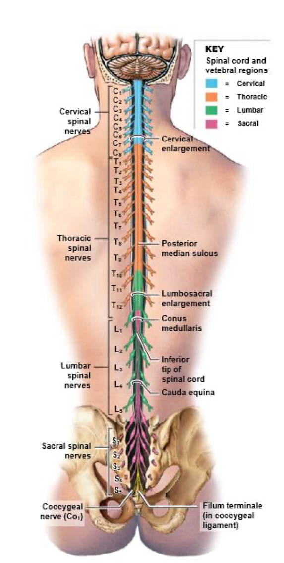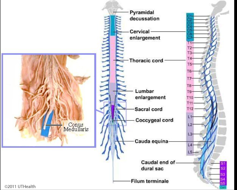 Lumbar: L1-S3, contains part of lumbar and sacral plexus.