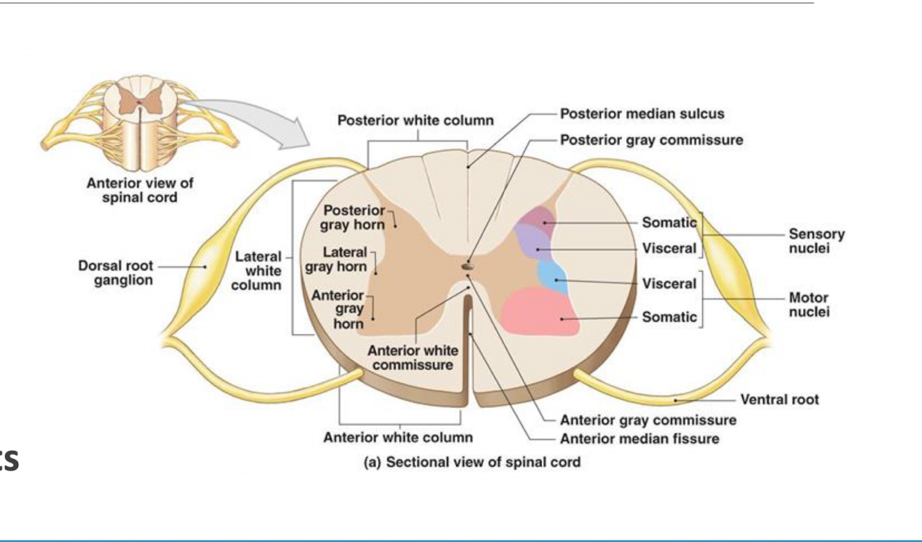 Anterior white column: Contains ascending and descending tracts of nerves that transmit motor and sensory information.