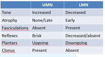 Numb clumsy hands Usually bilateral, one side may be more affected Finger tip paraesthesia Difficulty with fine motor tasks Dropping objects Reduced mobility UMN - remember Hoffman’s and Lhermitte’s sign