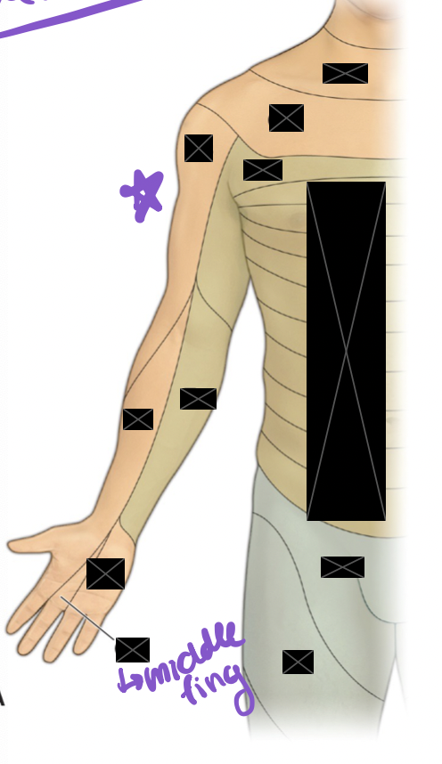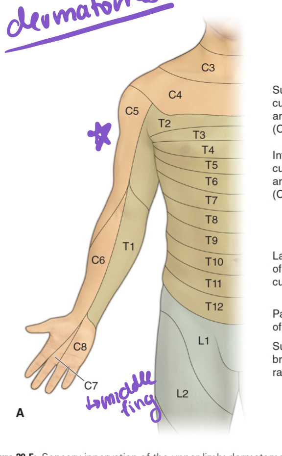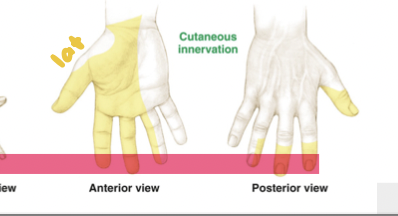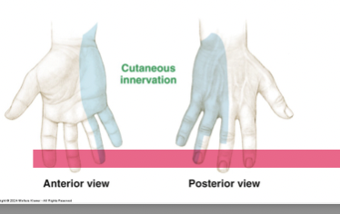 - Sensation lost over the thumb and adjacent two and a half digits.