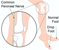 Cause: Fot-drop, shuffling gait(shuffling feet)