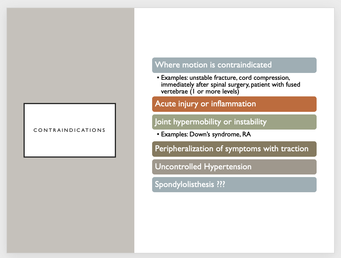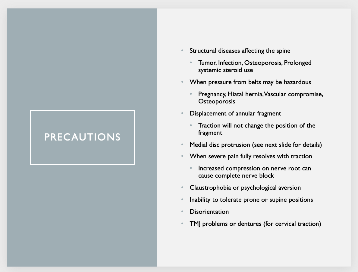 What are the contraindications for spinal traction?