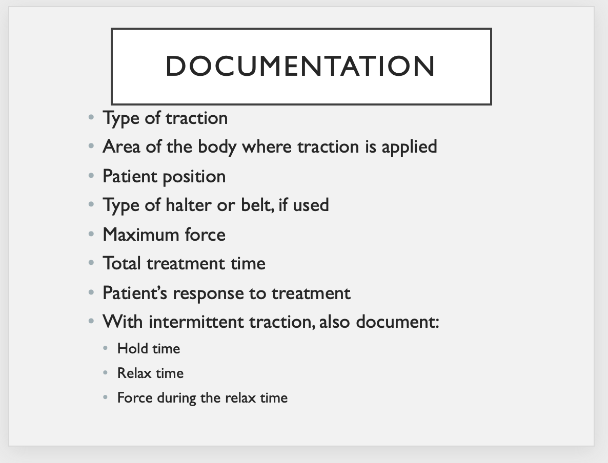 What should be documented after a traction session?