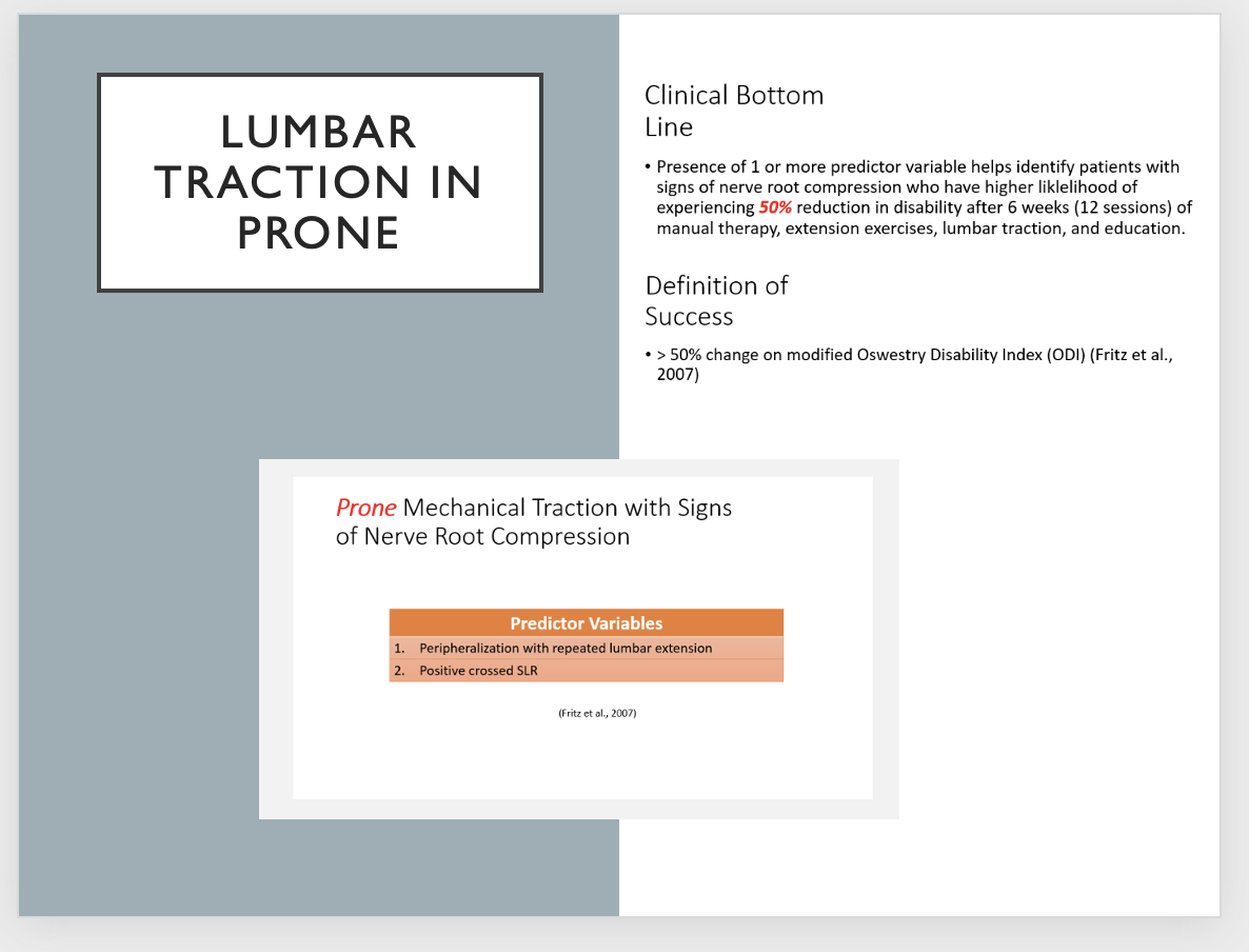 It showed that traction may have little or no impact on pain intensity, functional status, or global improvement.