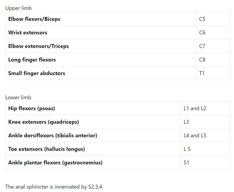 Remind yourself of the myotomes