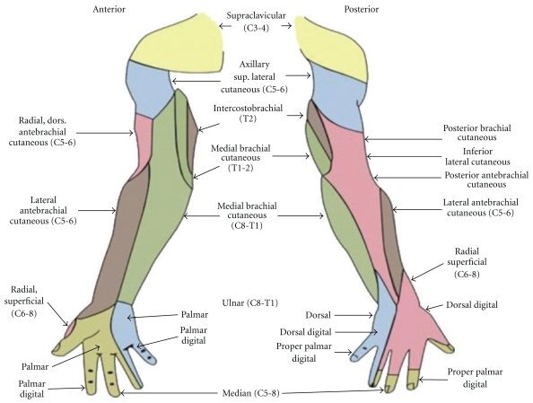 Remind yourself of the peripheral nerve distribution in the upper limb