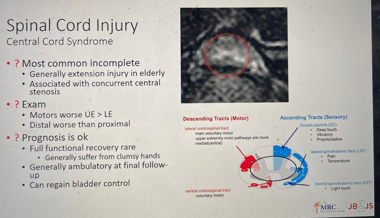 Forces head/neck extension results in this cord syndrome? Generally in elderly.